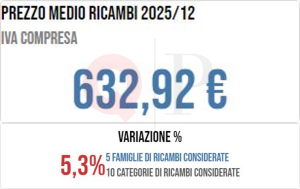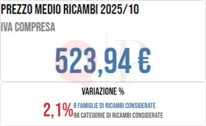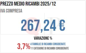 IL PREZZO MEDIO DI LISTINO DEI RICAMBI OEM È ARRIVATO A 400 EURO. E LA DINAMICA DEGLI INCREMENTI, CHE PURE RALLENTA, RESTA SUPERIORE ALL’INFLAZIONE.