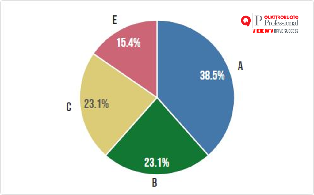 Se si analizzano i dati per marca, si può osservare che il brand con l’offerta più ampia è Mercedes, con 35 modelli e 1.162 versioni, davanti a BMW (rispettivamente 29 e 454), Audi (19 e 459) e Volkswagen (17 e 272). I quattro marchi tedeschi pesano per quasi il 23% sui modelli e per quasi 52% sulle versioni a mercato.